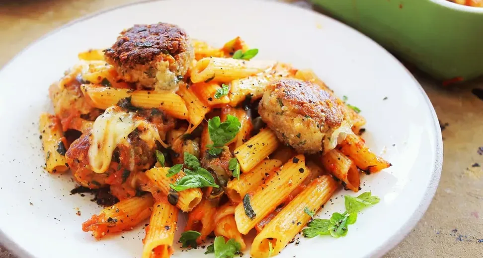 Paradicsomos-mozzarellás penne sütőben összesütve