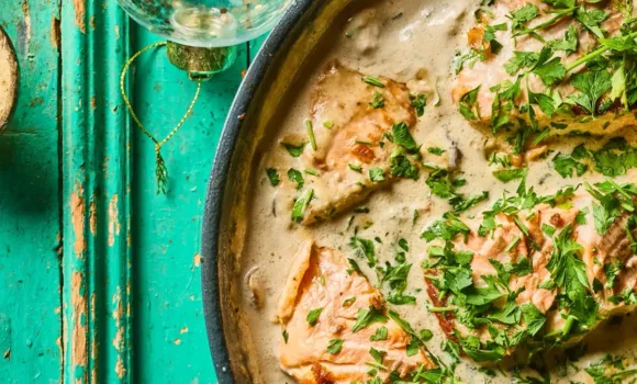Szaftos lazac tejszínes gombával: tökéletes vacsora pillanatok alatt