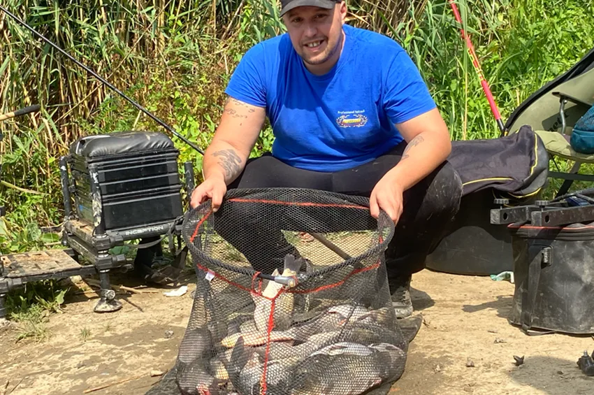 A pecát délelőtt 11 órakor fejezte be. Mérlege 17 darab kisponty volt 32-36 cm közötti méretben, valamint 23 kilogramm kárász. Egy igazán emlékezetes, élményekben gazdag 10-11 órás horgászatot zárt.