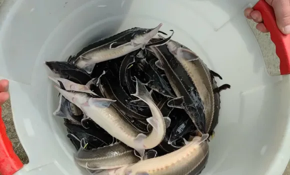 Kecsegeállományt erősítettek a Tiszán Tiszadorogmánál