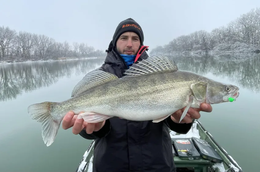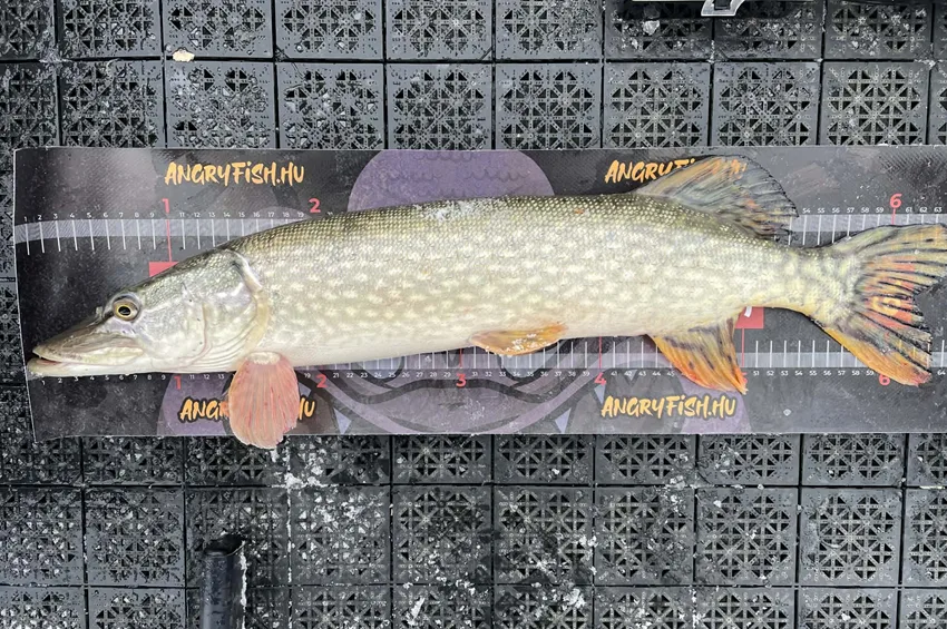 A süllők mellett egy csuka is horogra akadt: a hal teljes testhossza elérte a 60 centimétert, méltó zárásaként a különleges téli horgászatnak.