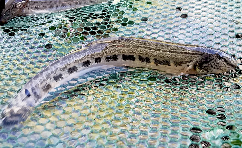 A hálóba került másik faj, a szivárványos ökle, szintén védett halfaj Magyarországon.