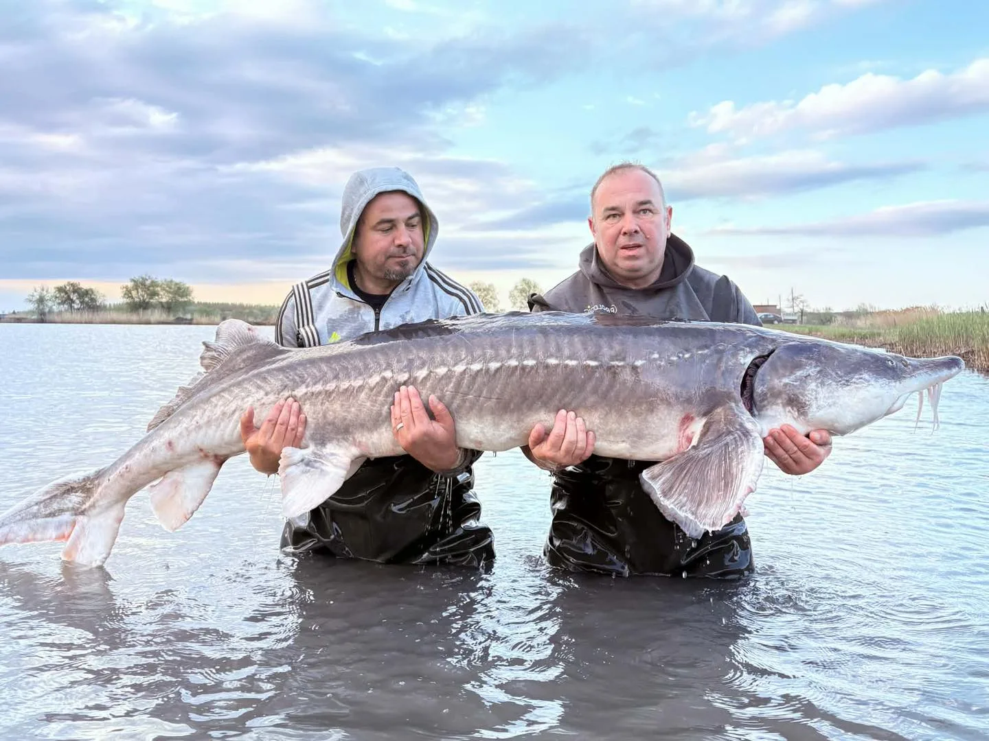 Erős kezdés: két óriási tokhal akadt horogra a Nomád tavon
