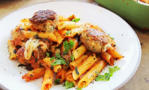 Paradicsomos-mozzarellás penne sütőben összesütve