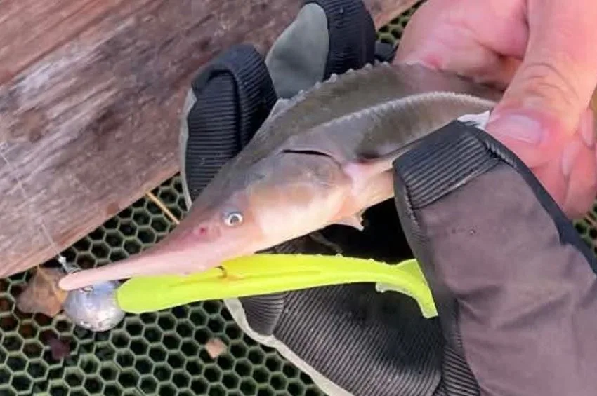 Az egyik helyen kis süllő és köves akadt horogra, majd váratlan vendég is tiszteletét tette a csónakban: egy kecsege.