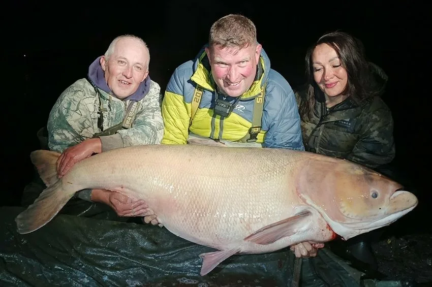 Két óra hosszán keresztül fárasztották a hatalmas busát, amelyet másfél óriág harcsának hittek. Végül a szabályok értelmében visszaengedték a vízbe.