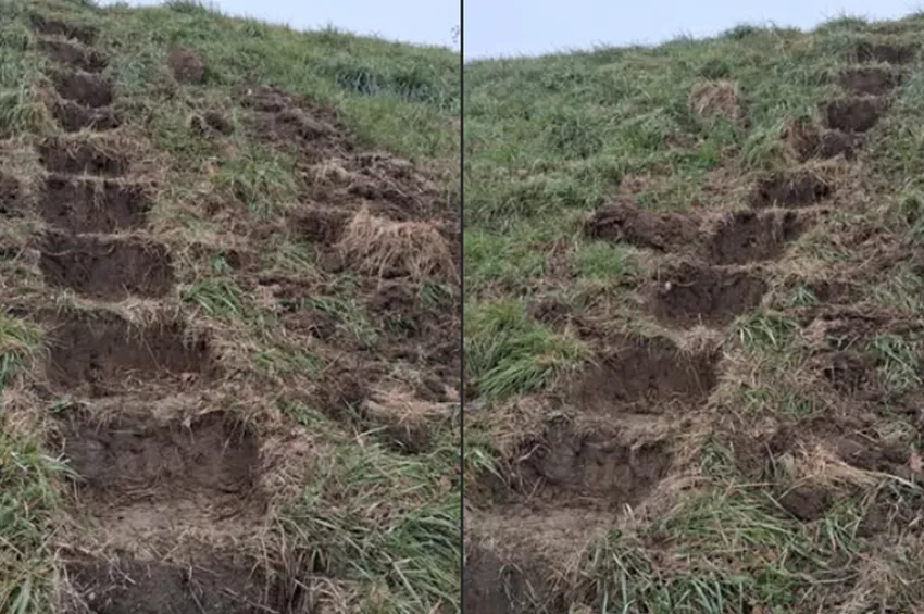 Megbontották az ikervári műcsatorna töltésének oldalát, és a rongálás helyén egy lépcsőt alakítottak ki a földből.