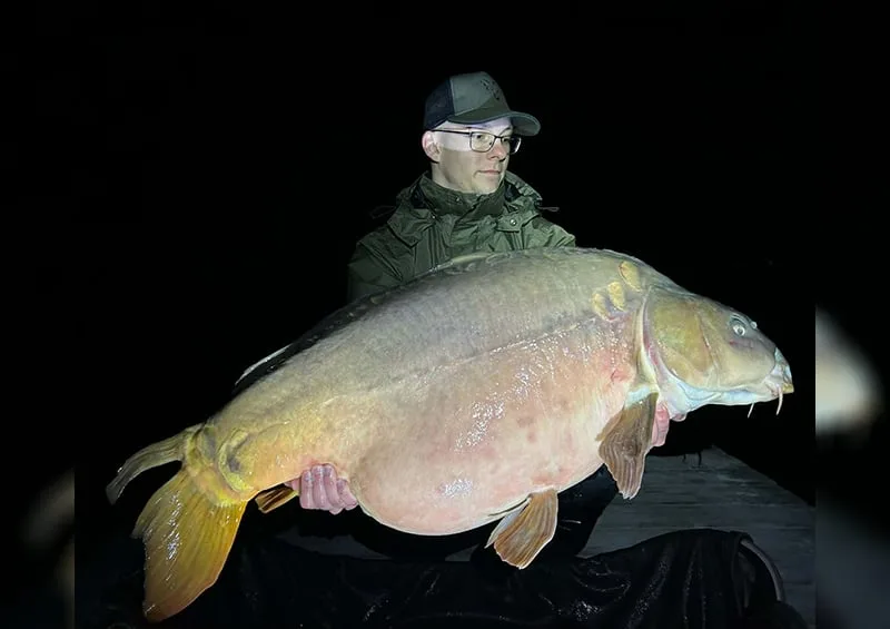 Hozzátette, hogy egy intenzív kapás után sikerült megfognia a „gyönyörű, hatalmas tükörpontyot”.