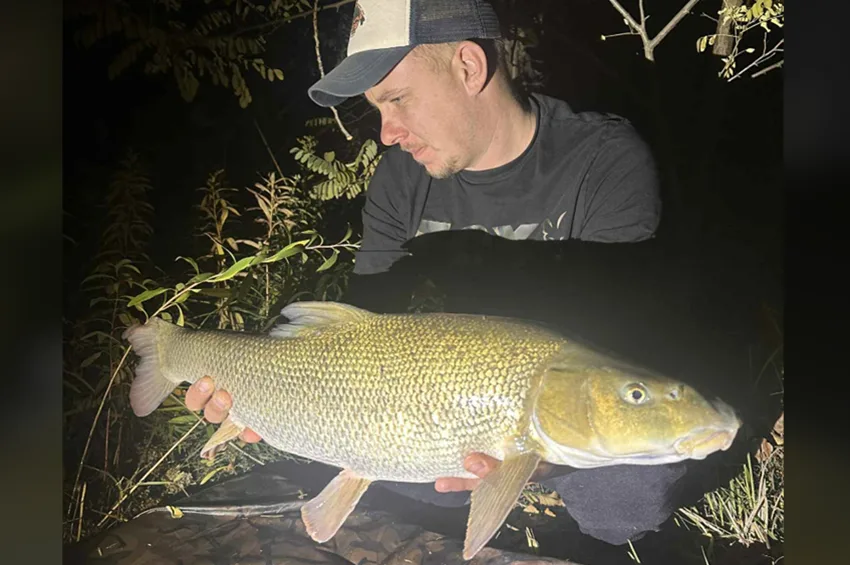 20 milliméteres, tintahal–polip–barack ízesítésű bojlival horgászott. Éjfél után nem sokkal erőteljes kapásra ébredt, és sietve futott a bothoz. Mivel a hal folyamatosan húzta a szereléket, biztosra vette, hogy egy ponty küzd a túloldalon.
