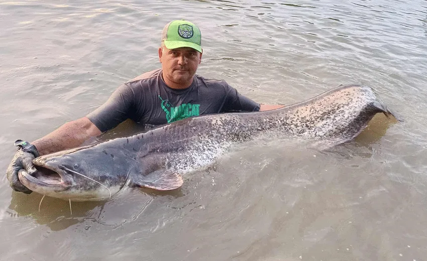 Hatalmas harcsa akadt horogra Mohácsnál – 102 kg tiszta izgalom!