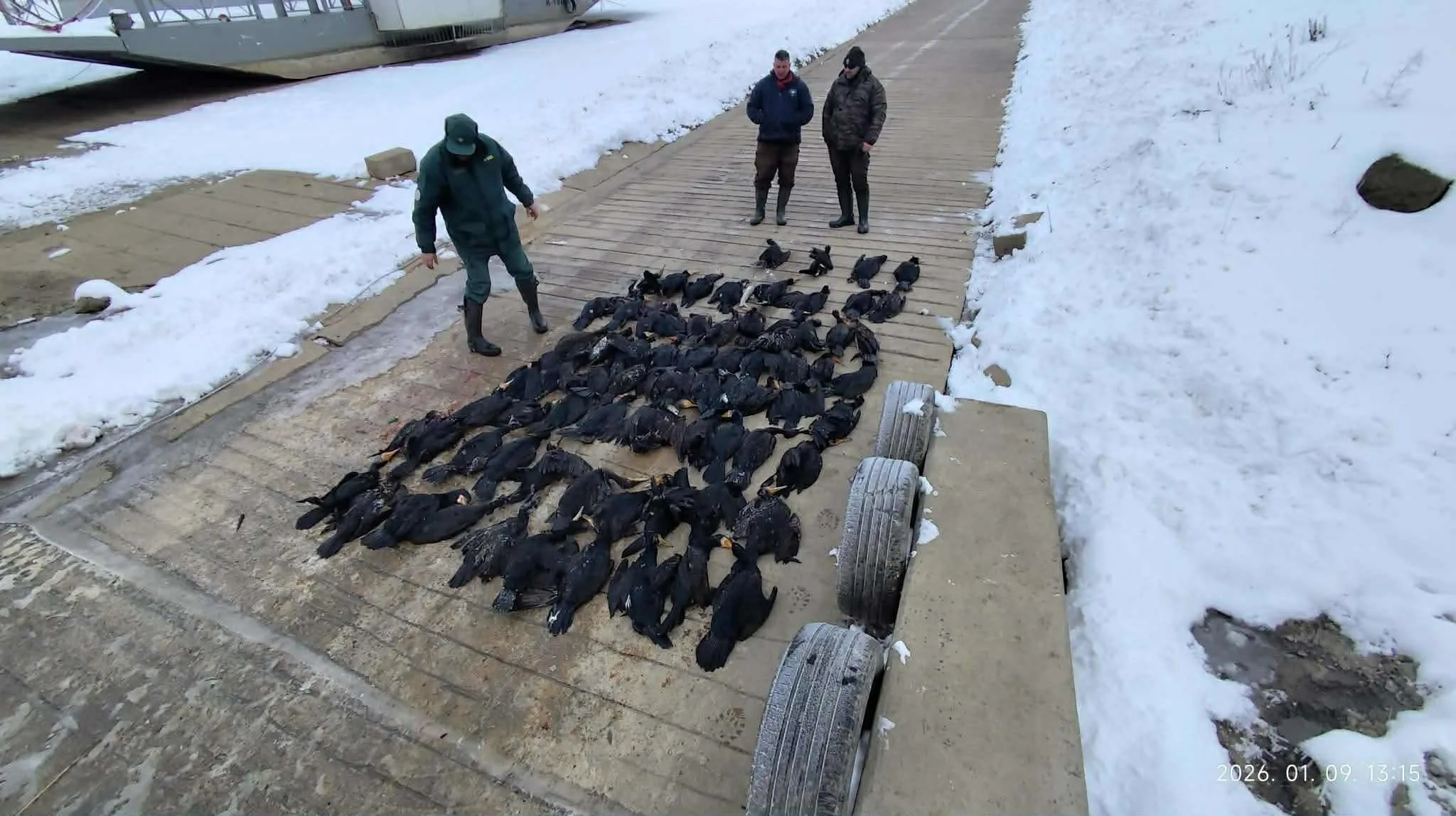 72 nagy kárókatonát ejtettek el január 9-én a Tiszán végrehajtott kormoránriasztás és -gyérítés során, amellyel a Közép-Tisza-Vidéki Horgász Egyesületek Szövetsége (KTVHESZ) gyakorlatilag kimerítette a teljes idényre engedélyezett kilövési keretet.