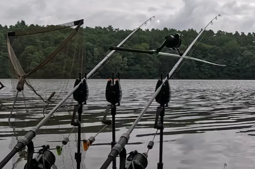 Három horgászbotot helyezetek el egymás mellett, és középsőre akkora kapás érkezett, hogy szó szerint repült a bot a levegőbe.